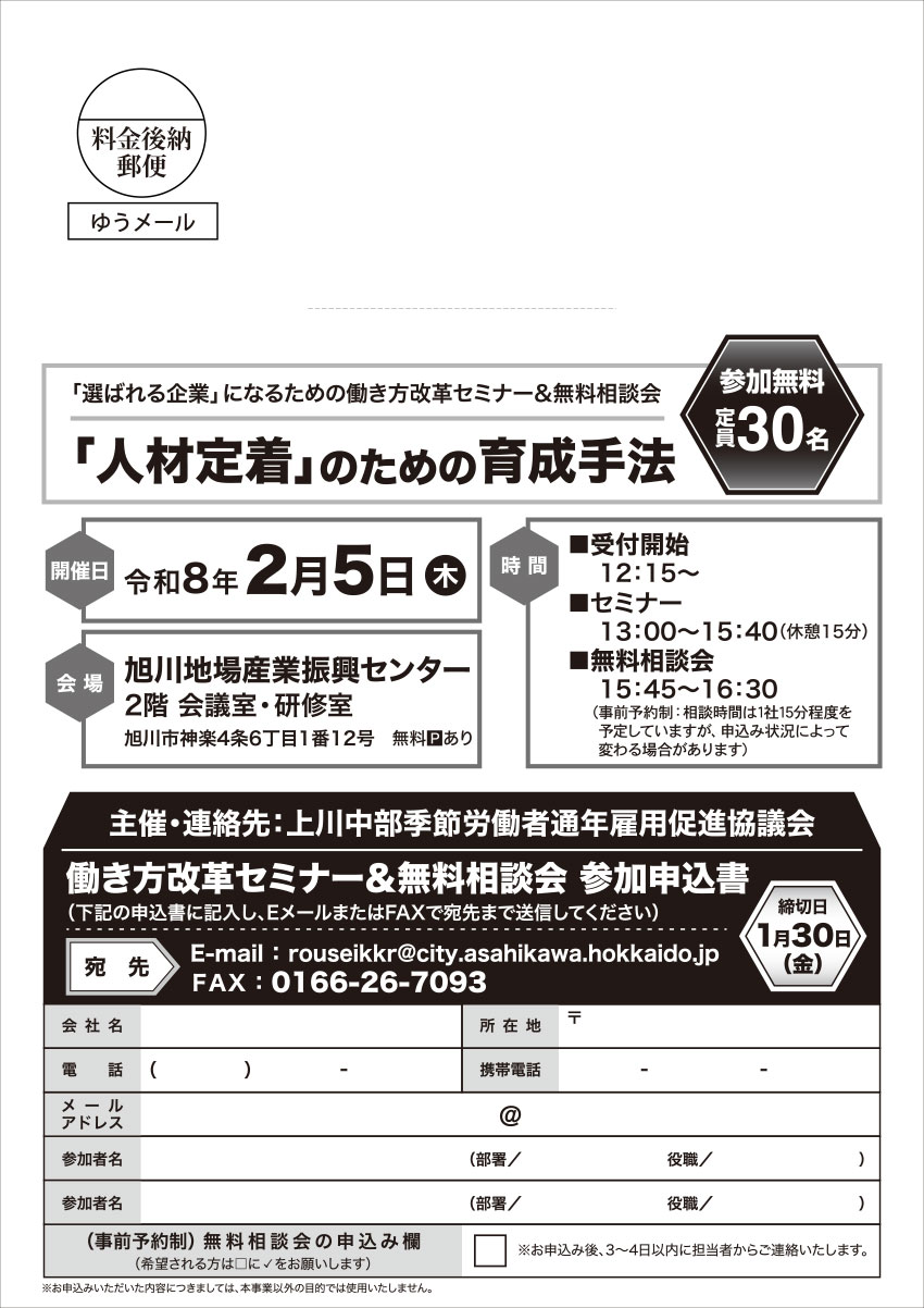 令和7年度働き方改革セミナーの参加企業を募集します。