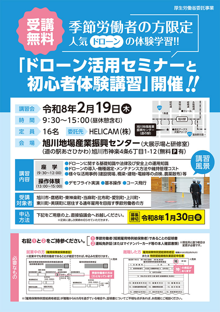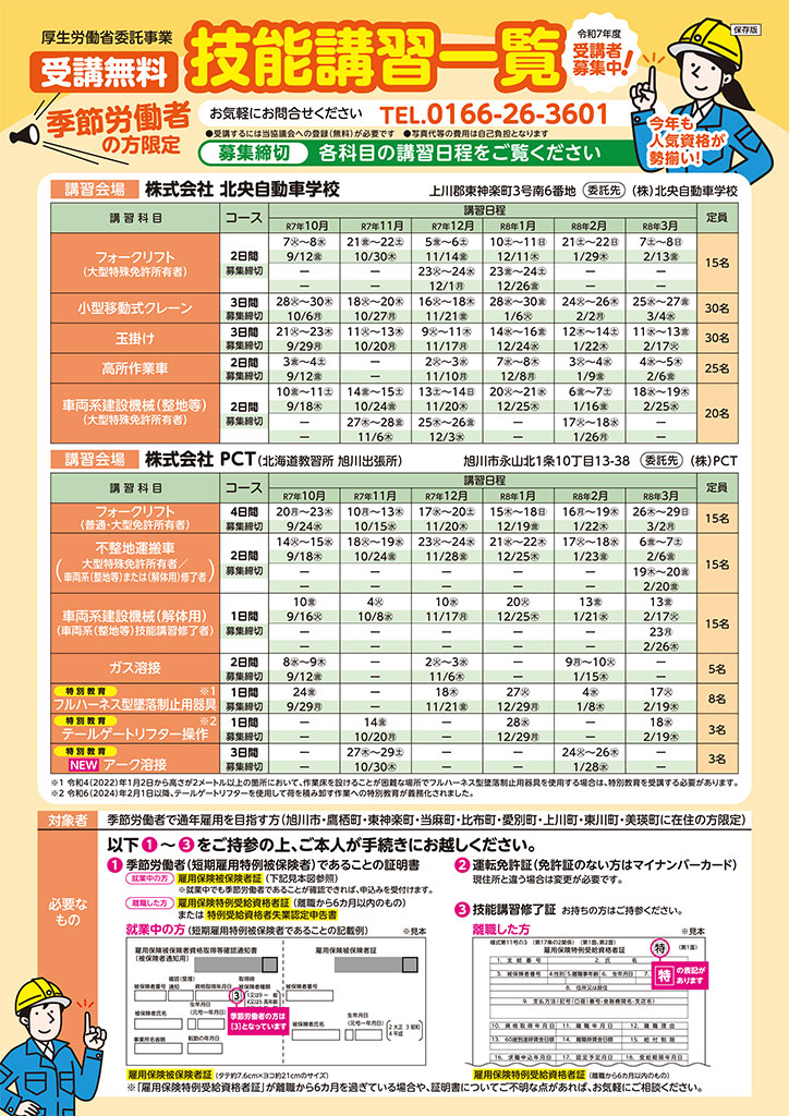 季節労働者を対象に通年雇用化につながる資格取得のための、技能講習を実施します。